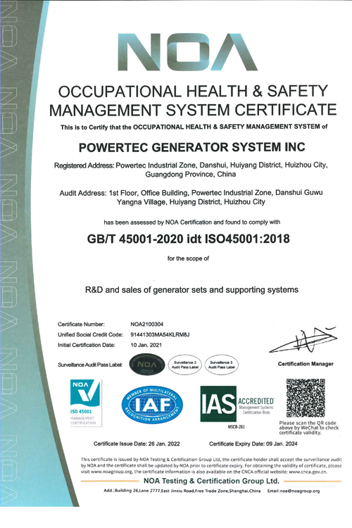 Occupational health & safety Management System Certificate